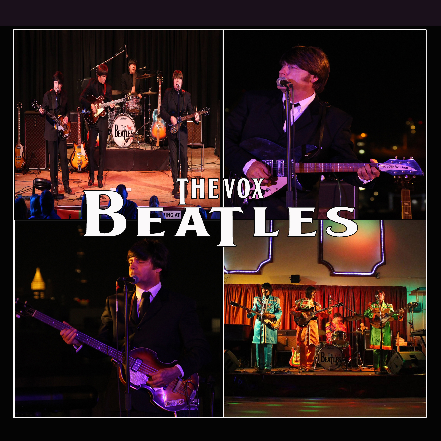 Beatlemania is back and The Beatles have been back to number one, so grab your Ticket To Ride as The Fab Four Vox Beatles take you on a Magical Musical Mystery Tour of 2 hours of Beatles classics. All performed with original musical instruments and authentic costumes covering the time line of the world’s greatest ever band. From their Mop Top beginnings to their Roof Top Farewell.